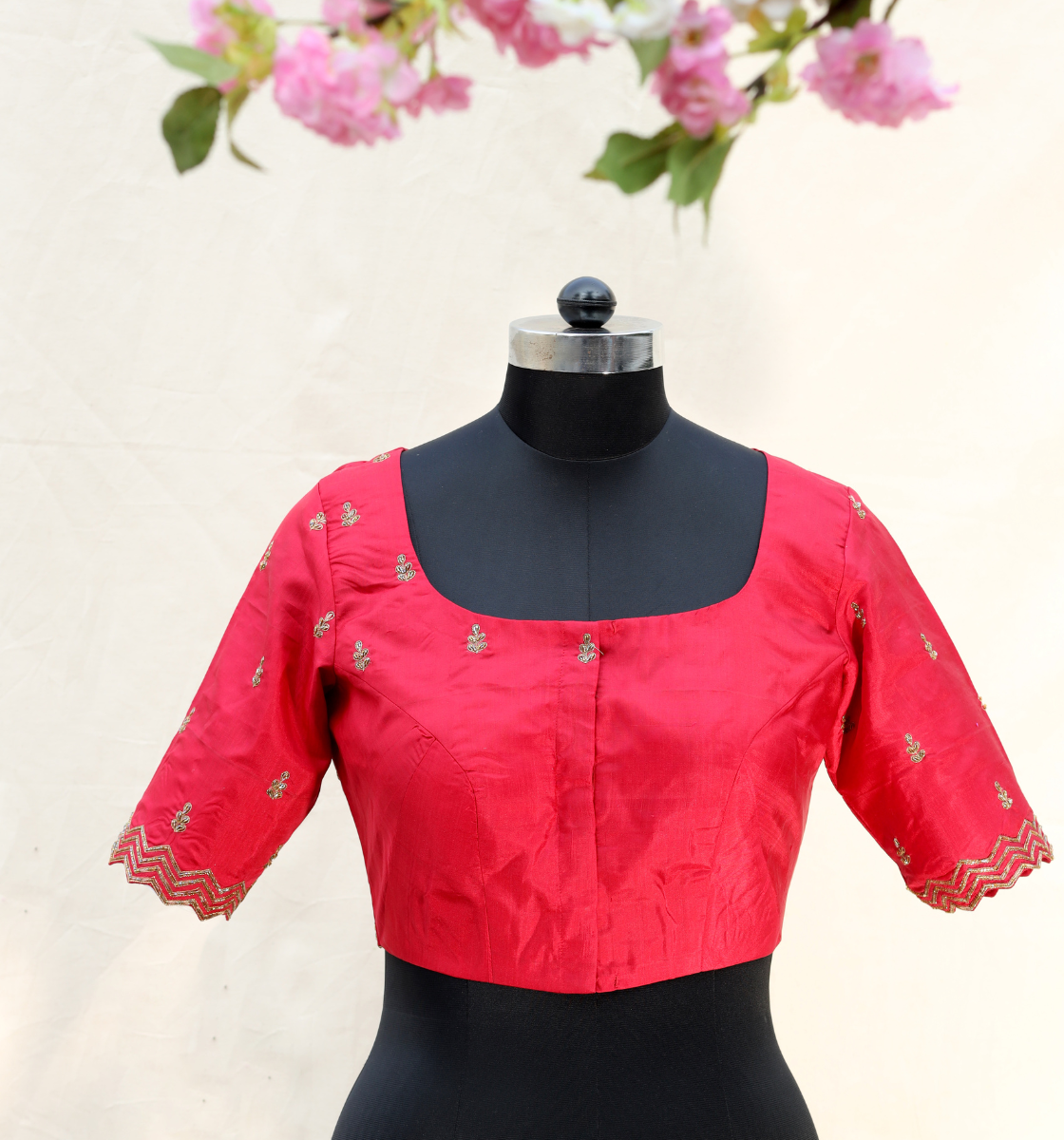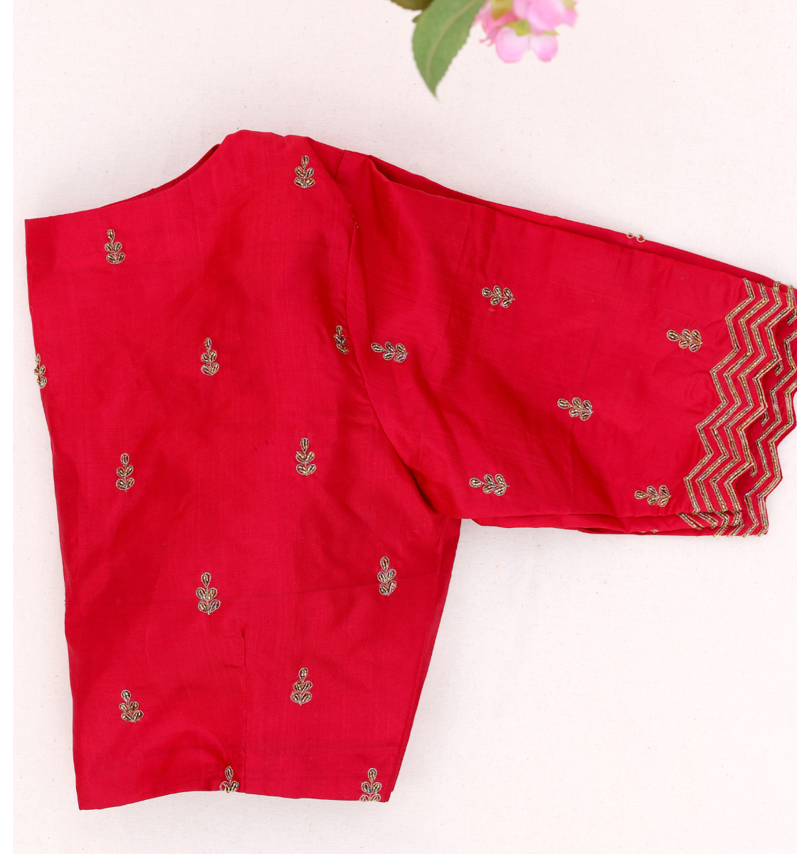 Deep Red Blouse with Zigzag Sleeve and Body Motifs