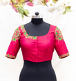 "A maroon blouse featuring a captivating combination of floral knot and mirror embroidery, adding an enchanting and stylish touch to your outfit."
